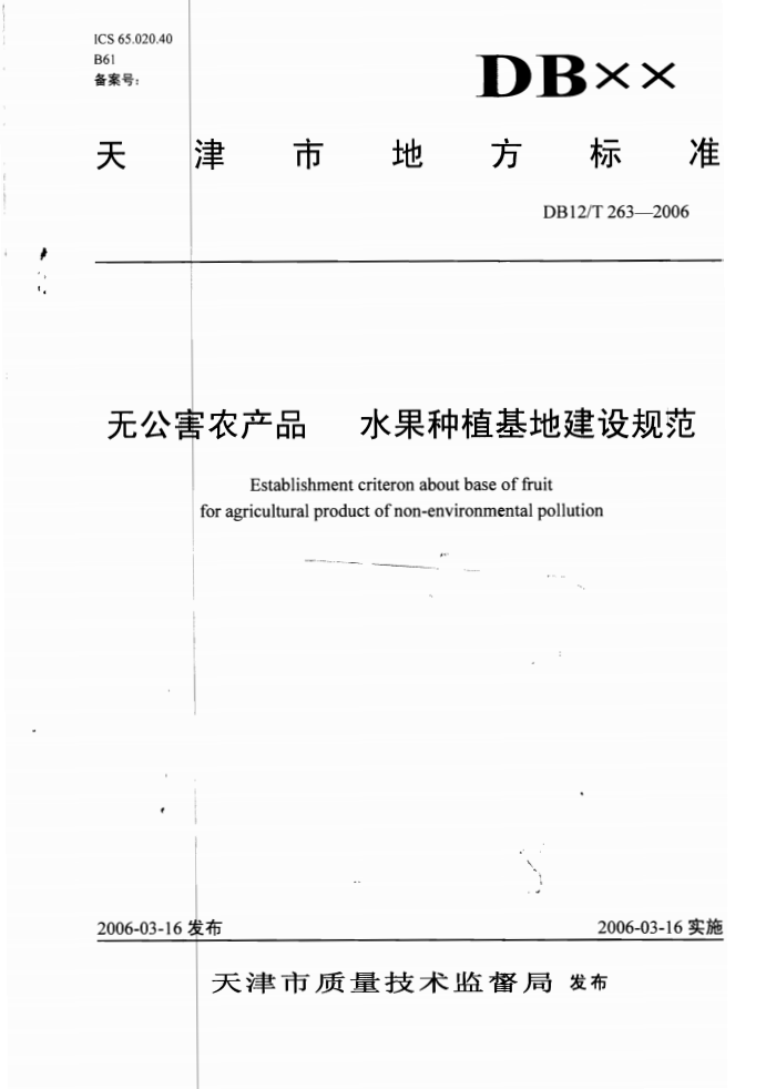 DB12/T 263-2006 无公害农产品 水果种植基地建设规范 |