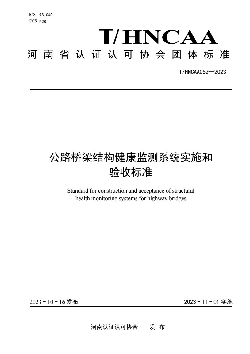 英文名称:Standard for construction and acceptance of structural health monitoring systems for highway bridges