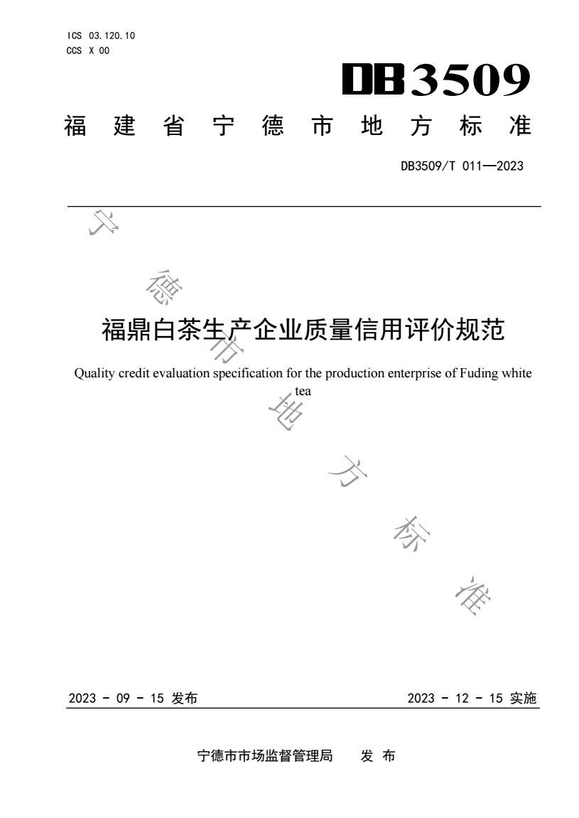 DB3509/T 011-2023 福鼎白茶生产企业质量信用评价规范 |