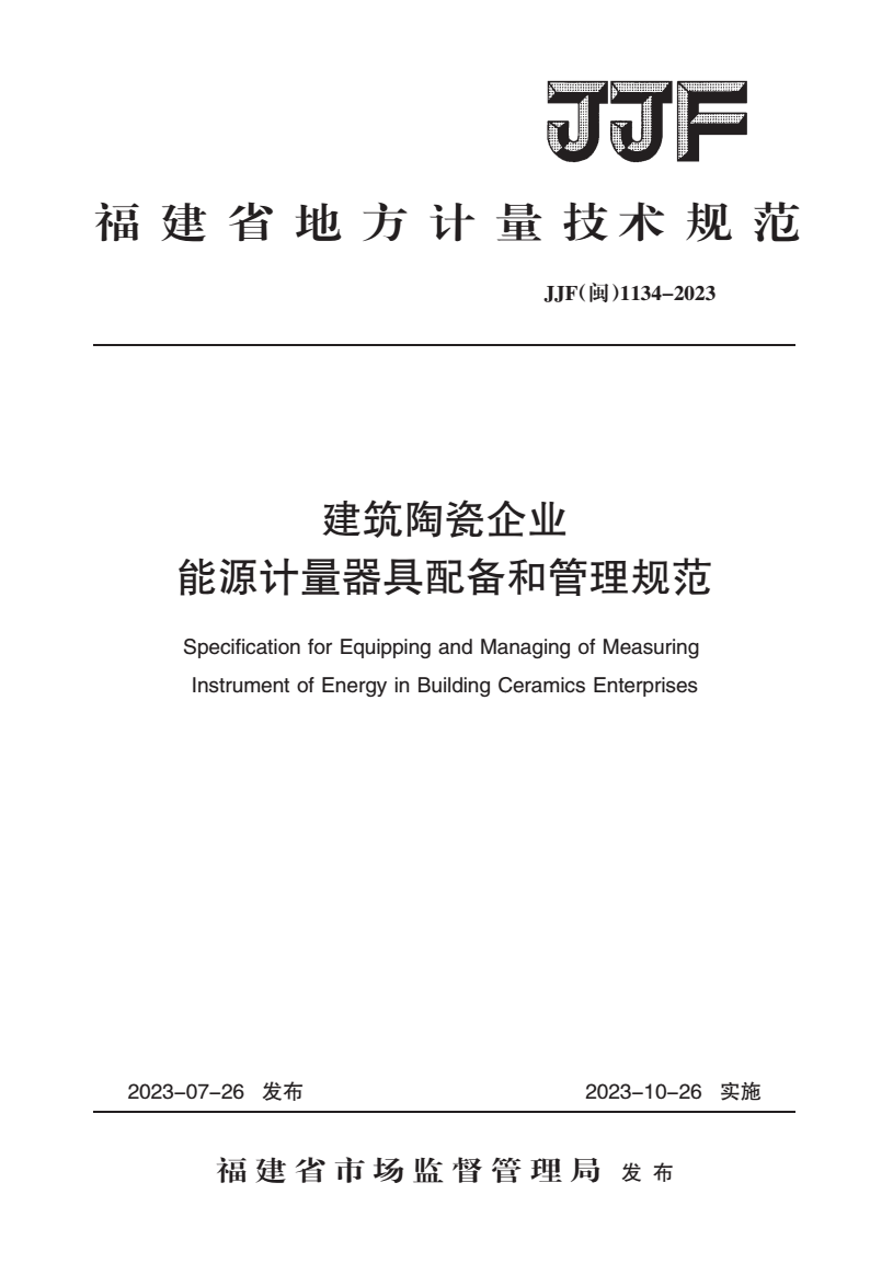 JJF(闽) 1134-2023 建筑陶瓷企业能源计量器具配备和管理规范 |