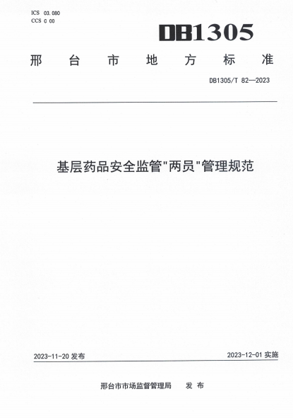 DB1305/T 82-2023 基层药品安全监管"两员"管理规范 |