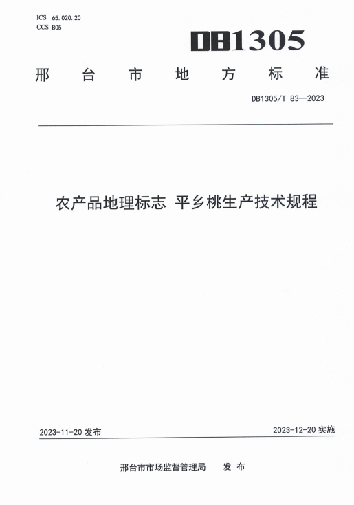 DB1305/T 83-2023 农产品地理标志 平乡桃生产技术规程 |