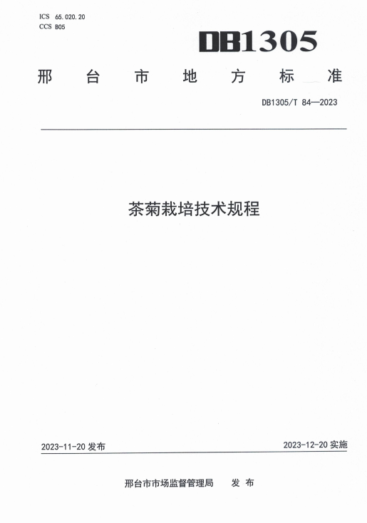 DB1305/T 84-2023 茶菊栽培技术规程 |