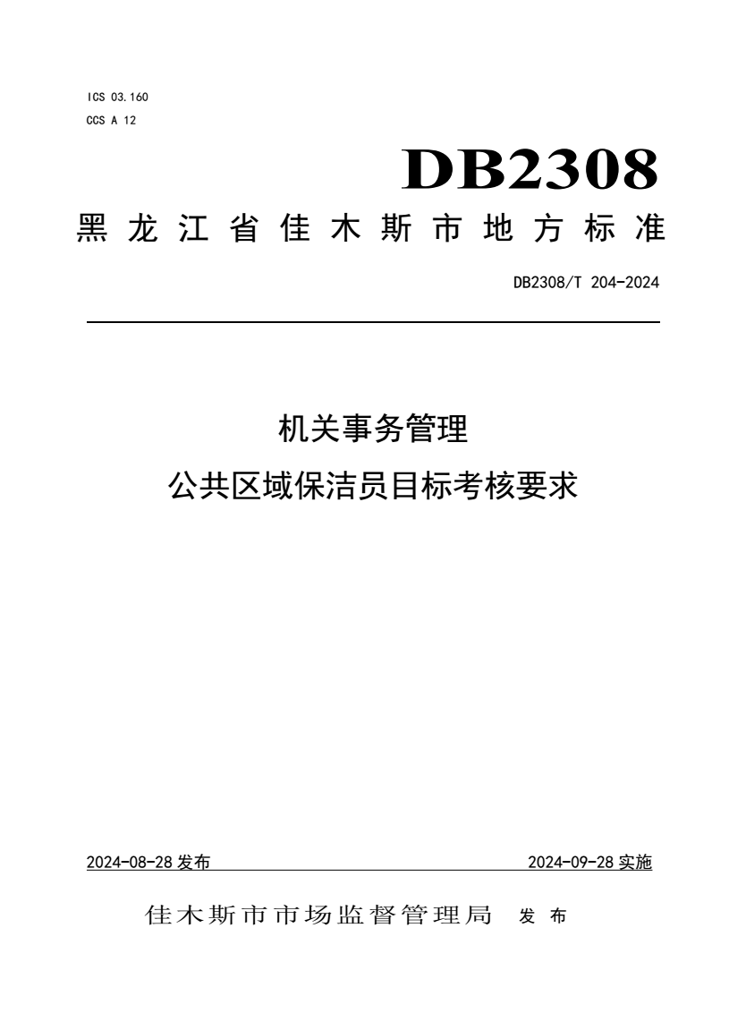 DB2308/T 204-2024 机关事务管理公共区域保洁员目标考核要求 |
