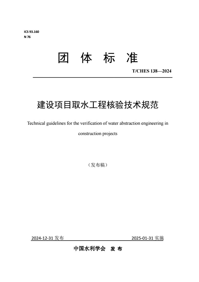 英文名称:Technical guidelines for the verification of water abstraction engineering in construction projects