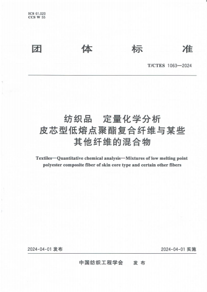 英文名称:Textiles-Quantitative chemical analysis-Mixtures of low melting point polyester composite fiber of skin core type and certain other fibers