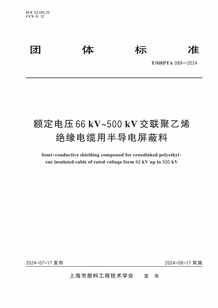 标准名称:额定电压66kV~500kV交联聚乙烯绝缘电缆用半导电屏蔽料