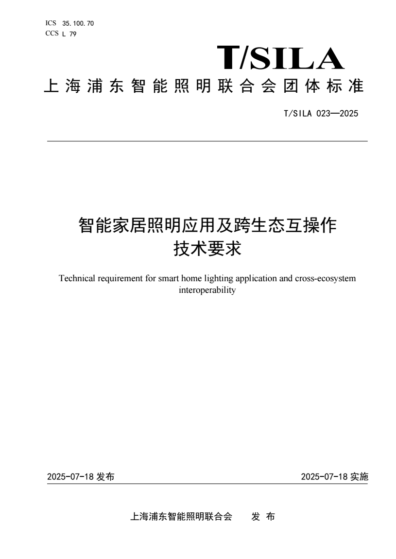 标准名称:智能家居照明应 用及跨生态互操作 技术要求