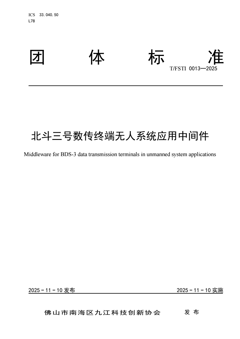 标准名称:北斗三号数传终端无人系统应用中间件