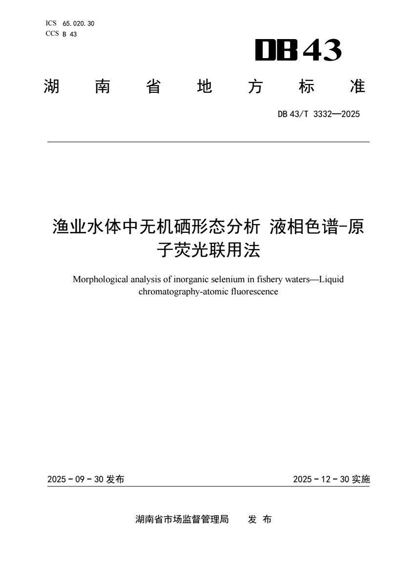 DB43/T 3332-2025 渔业水体中无机硒形态分析 液相色谱-原子荧光联用法 |