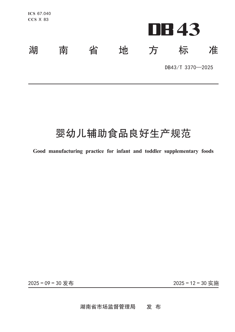 DB43/T 3370-2025 婴幼儿辅助食品良好生产规范 |