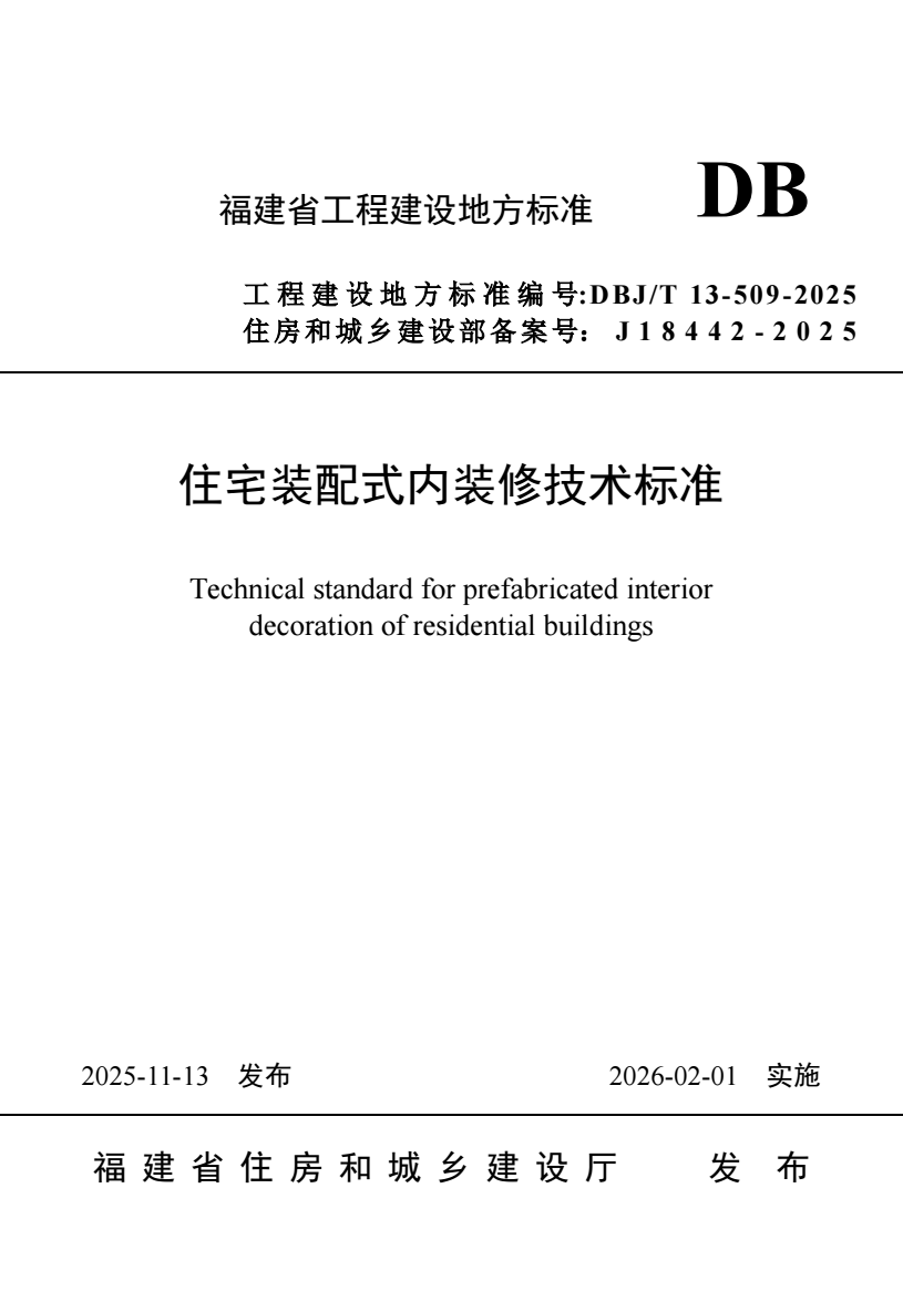 DBJ/T 13-509-2025 住宅装配式内装修技术标准 |