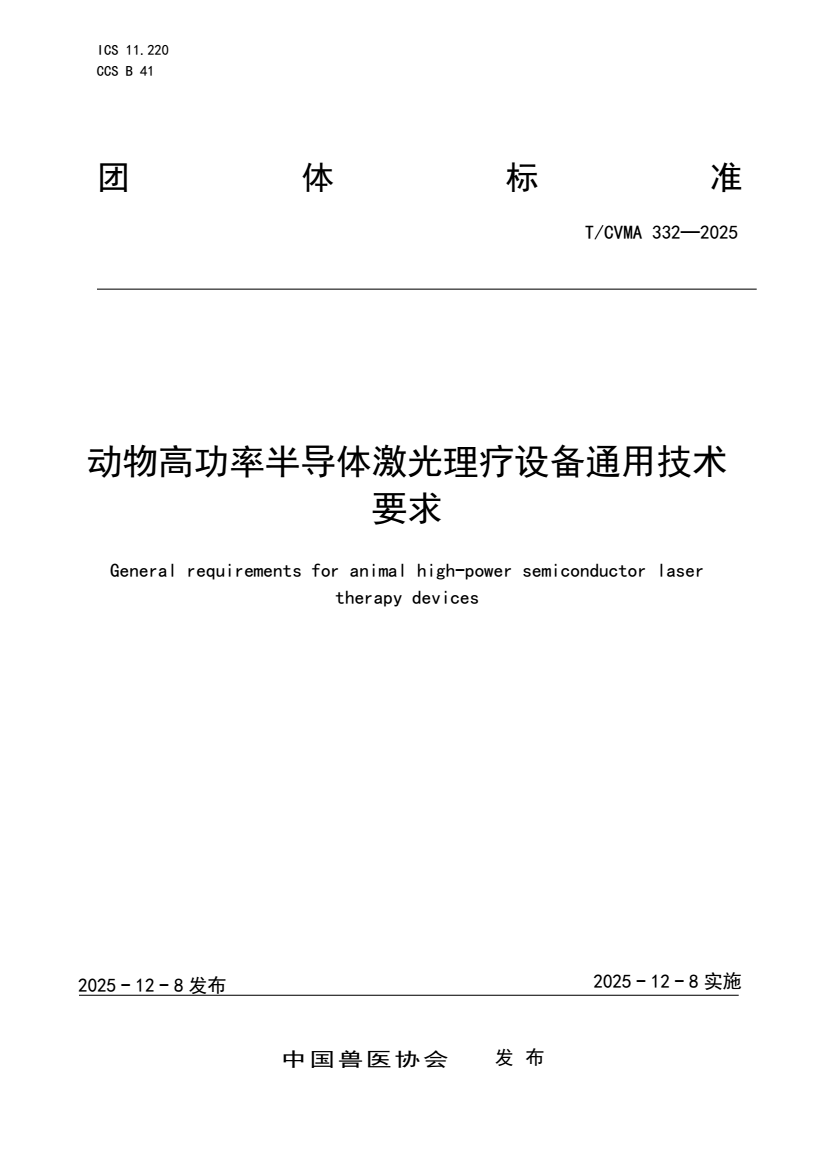标准名称:动物高功率半导体激光理疗设备通用技术要求