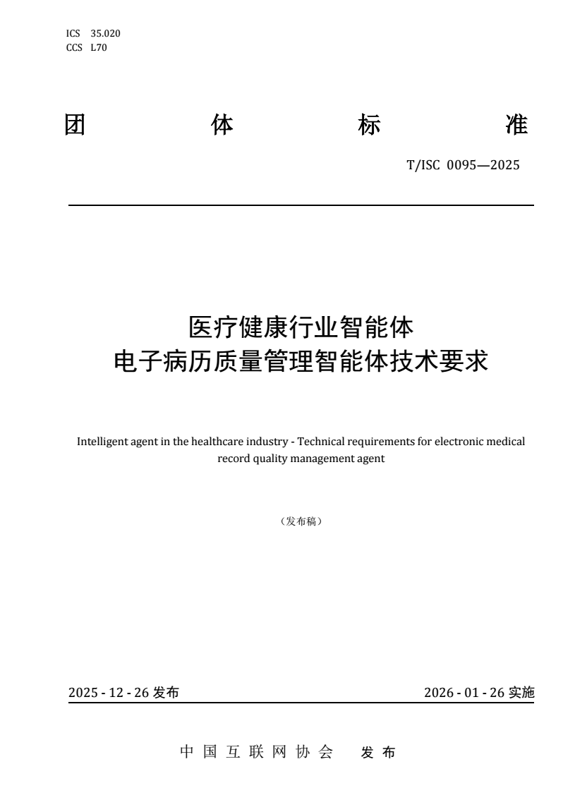 标准名称:医疗健康行业智能体 电子病历质量管理智能体技术要求