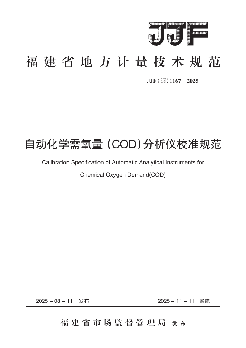 JJF(闽) 1167-2025 自动化学需氧量(COD)分析仪校准规范 |