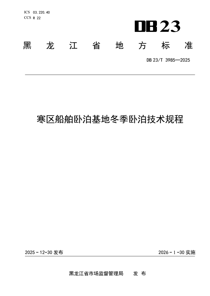 DB23/T 3985-2024 寒区船舶卧泊基地冬季卧泊安全技术规程 |