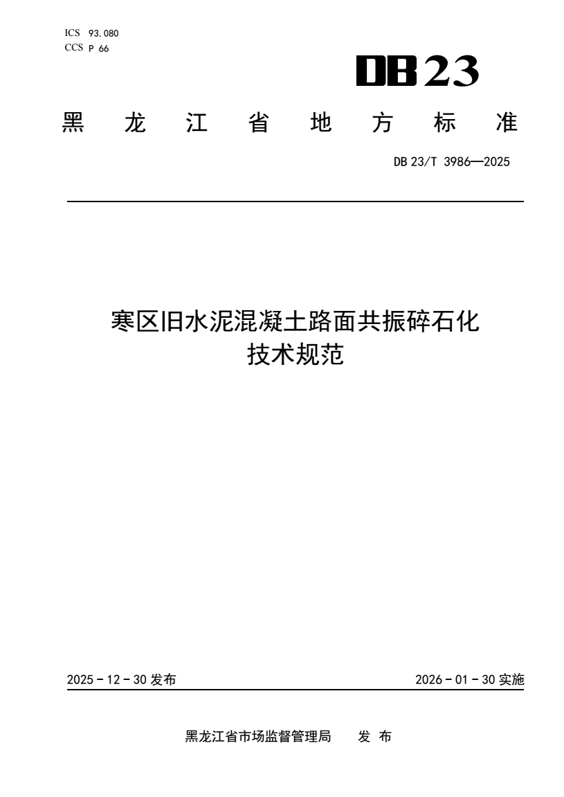 DB23/T 3986-2024 寒区旧水泥混凝土路面共振碎石化技术规范 |
