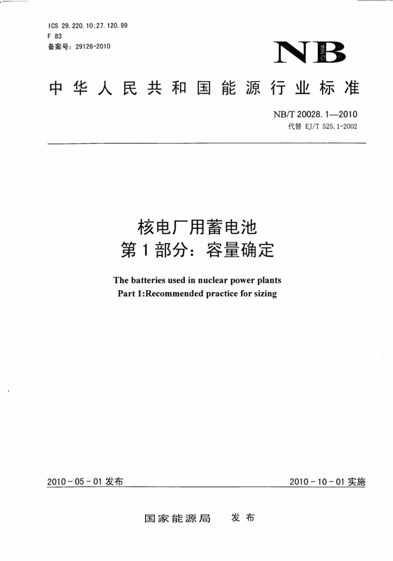 标准名称:核电厂用蓄电池 第1部分:容量确定