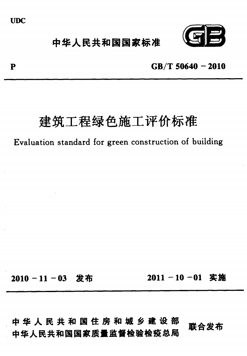 英文名称:Evaluation standard for green construction of building