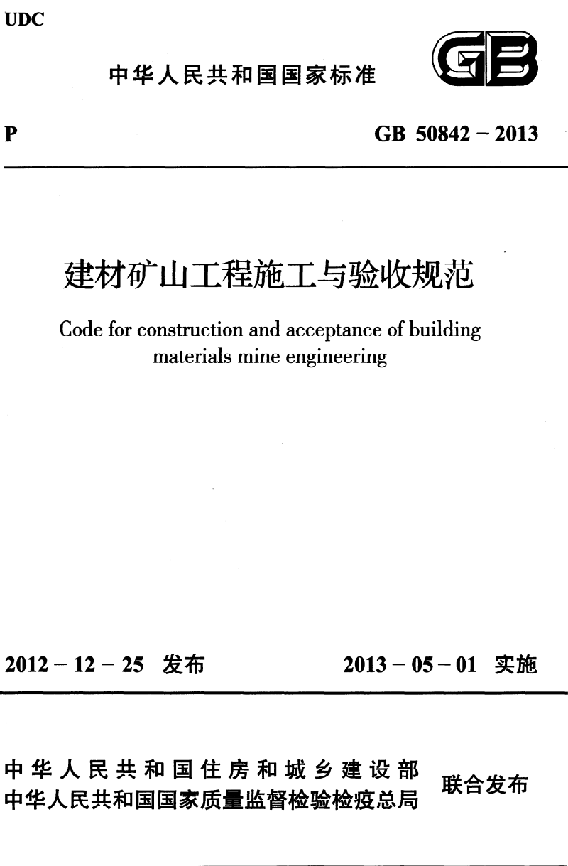 英文名称:Code for construction and acceptance of building materials mine engineering