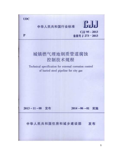 英文名称:Technical specification for external corrosion control of buried steel pipeline for city gas