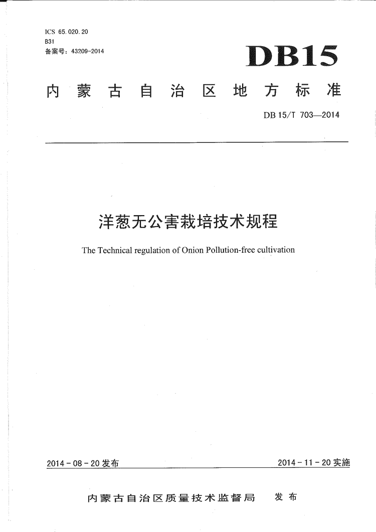 英文名称:Technical rules of Onion for standard cultural technique in Inner Mongolia