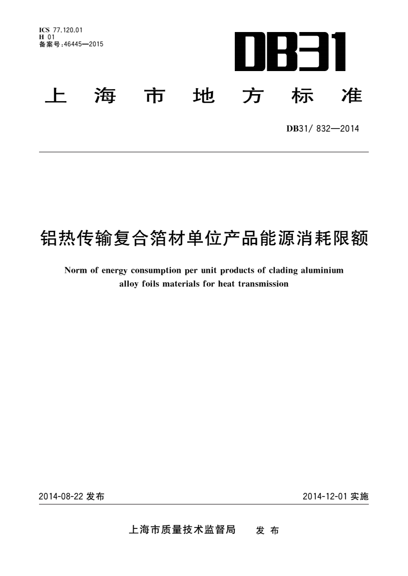 标准编号:DB31/ 832-2014